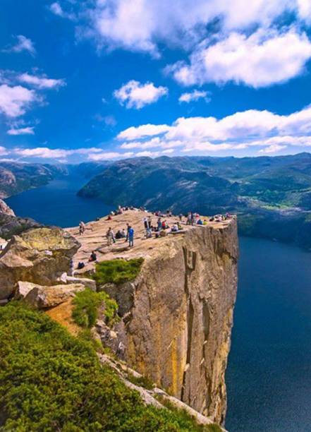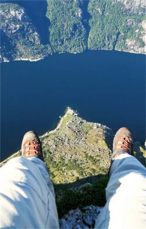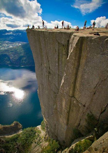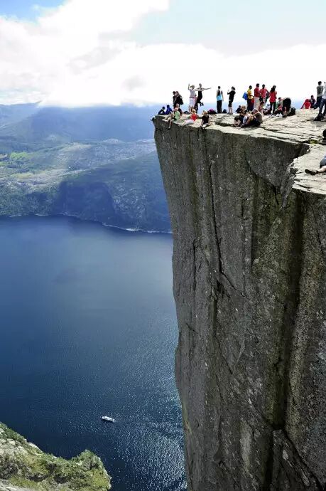 它高耸于挪威吕瑟峡湾600米之上,从峡湾乘游船经过,从下往上看,那三面几乎与海平面呈90度垂直悬崖,震人心魄,从上往下看更是让人此生难忘。