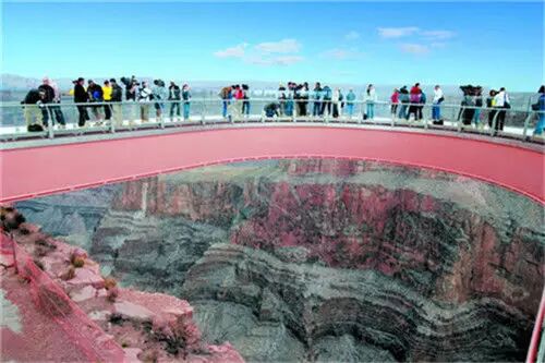 美国大峡谷空中走廊,被喻为“世界第八大奇景”。坐落于美国科罗拉多大峡谷西侧,悬空于科罗拉多河1219米之上,向大峡谷悬崖以外延伸21.34米。游客站在大峡谷空中走廊,可以720度的角度欣赏大峡谷奇观。