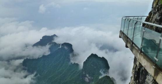 张家界天门山玻璃栈道长60米,最高处海拔1430米。嗯。。。挑战一下?