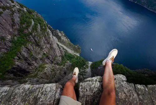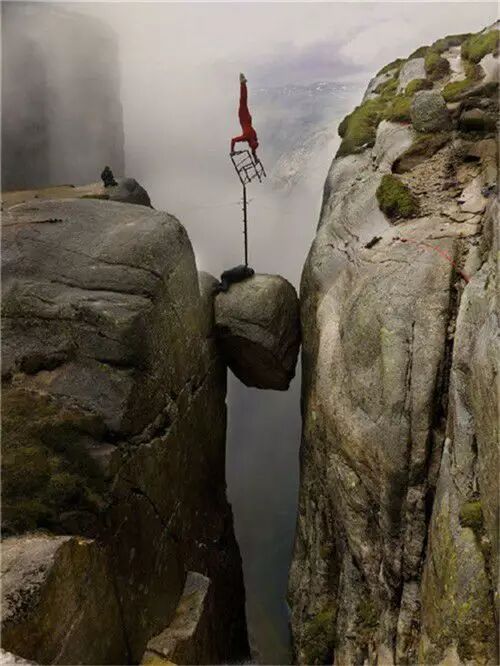 这块石头最惊险的地方就是周围没有任何保护,而且下面峡湾的蒸汽和云雾经常弥漫到石头上面,所以有时候根本就看不到下面的情况。然而那些“勇敢者”们从不放弃挑战这块奇迹石。