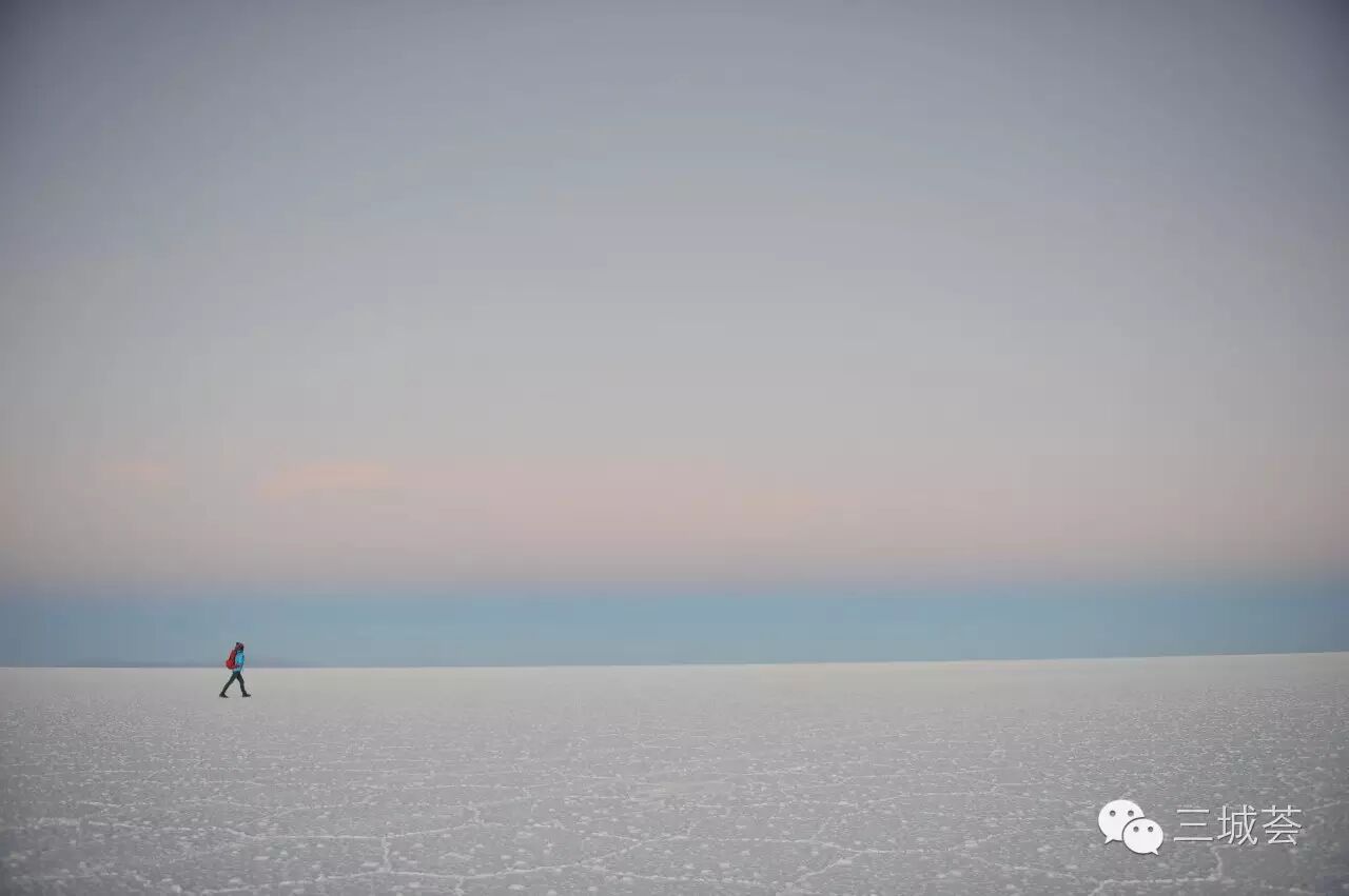 头一天晚上看了水中日落,第二天就找了一片干地看雪白盐湖上的日出
