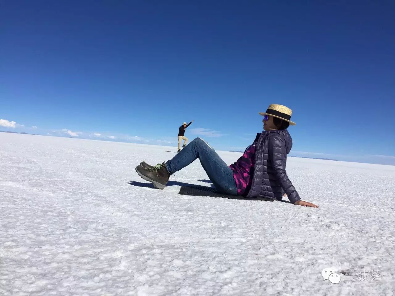 3.我们因为是自己包车, 所以司机导游是完全按照我们要求安排每天行程。 我们日落看的倒影, 日出看的干盐田。 两个各有特色, 很难说哪个更好。 干盐田就觉得象在外太空的白云上行走一般, 那个感觉非常奇特。Ms如果参加group tour, 日出日落都是看的倒影。私人团的另一个好处是可以随便换衣服, 否则一车女的都想照相,排队换衣服都把时间用完了。盐湖三日团我们是定的hodaka mountain expedition