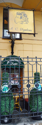 帝王,将相,还有个文人也来了。涅瓦大街与莫伊卡运河交界处的一家咖啡店外,高悬着普希金头像。那是文艺咖啡馆,是19世纪俄罗斯文学泰斗们碰面的地方。彼得堡盛产文豪,小店的常客们都是今天振聋发聩的名字: 莱蒙托夫、陀斯妥耶夫斯基、舍夫琴科... 最出名的就是普希金了。可惜不是因为他的诗比别人名气大,而是因为这里是他决斗前休息的地方。