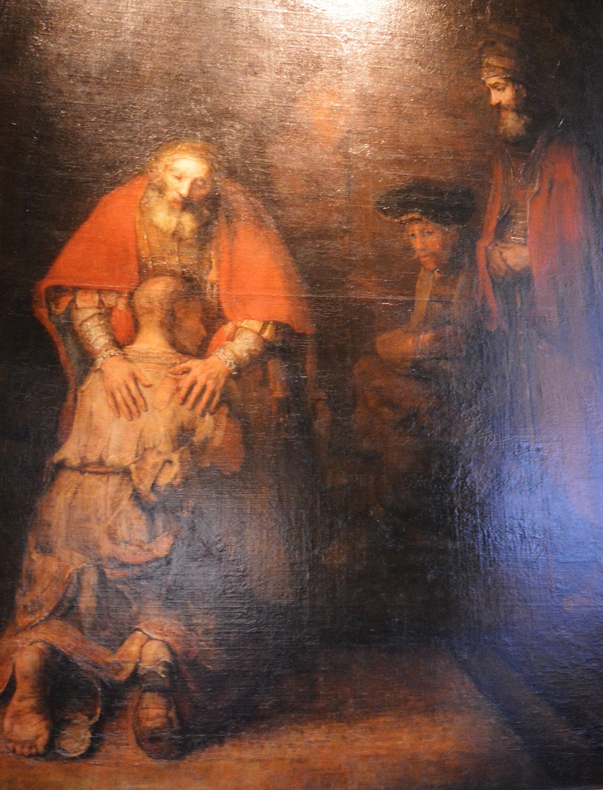 另一幅最出名的藏品就是伦伯朗绝笔作浪子回头。西方油画名作里一小半都是圣经题材,这一幅也不例外;表现的是基督教的爱与宽容。