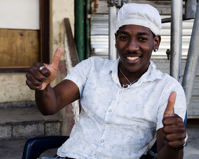 古巴人热情开朗,给我留下了很好的印象。偶尔有人想跟你做点小生意,所用的套话惊人地相似。一般是在互相问候之后,就会问你从哪里来,然后他们就会说有朋友也在那里,接着会问你来几天了,后来我们发现如果回答“好几天了”,他们一般就会友好地告别,估计觉得你该住该买的都已经搞定了,就不必打扰了:),现在想起来仍让人不禁莞尔。