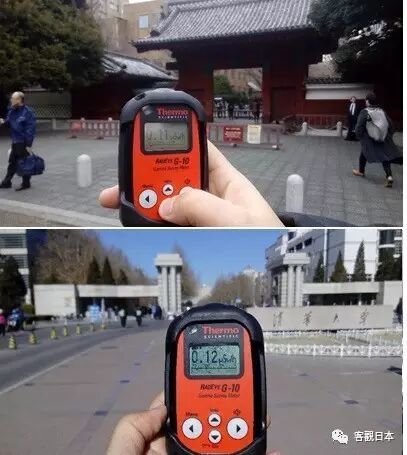8、东京和北京某大学校门口的辐射值对比