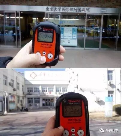 9、东京和北京某医院门口的辐射值对比