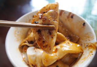 成都名小吃钟水饺。创始人叫钟少白,现在在成都有十几家分店,其中的武侯店是规模最大的。钟水饺不带汤,放眼望去,只有一汪红油(红油、芝麻油和红酱油),再撒上蒜泥和各种调味料,想起来就留口水。四川的钟水饺和北方水饺最大的不同是:里面是全肉馅儿的,皮很薄,全靠三油和调味料提味,吃起来辣中带甜,并且蒜味很浓郁。吃的时候一定不要倒醋,不然就糟蹋了钟水饺原本的味道了。吃完这碗钟水饺,一定记得嚼两块儿口香糖,以免污染空气啊!