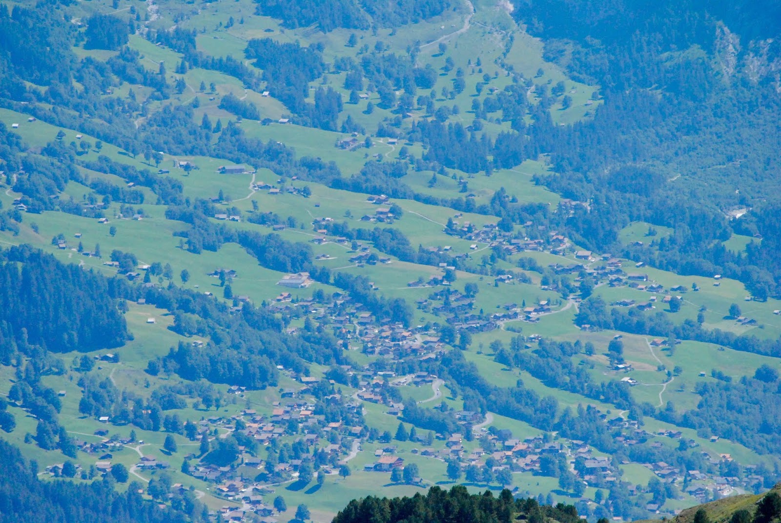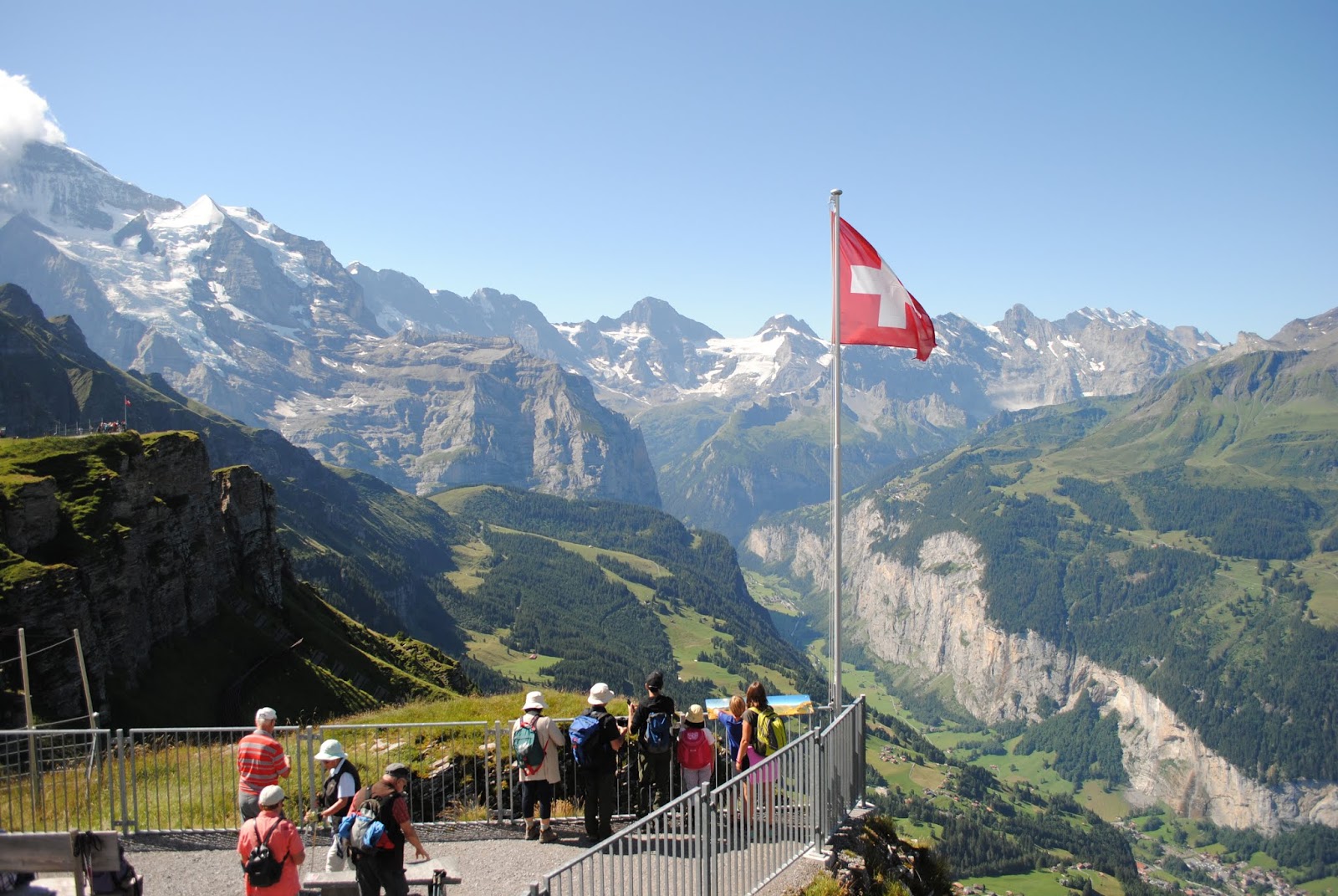 我们在文根没有多逗留,直接就上了前往Mannlichen的缆车,十分钟之后下了缆车。往山下看,不远处就是文根小镇,更远处位于山谷之中的应该就是劳特布龙嫩了。