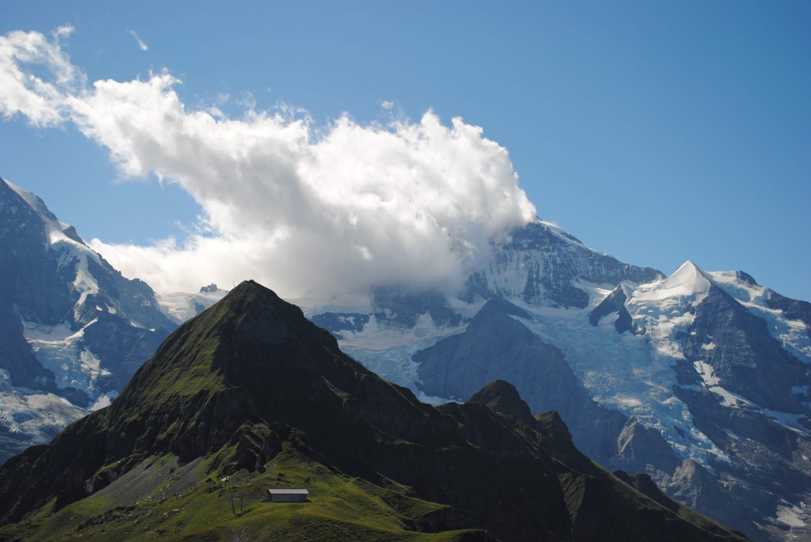 少女峰越来越近,云雾也有点散开了。
