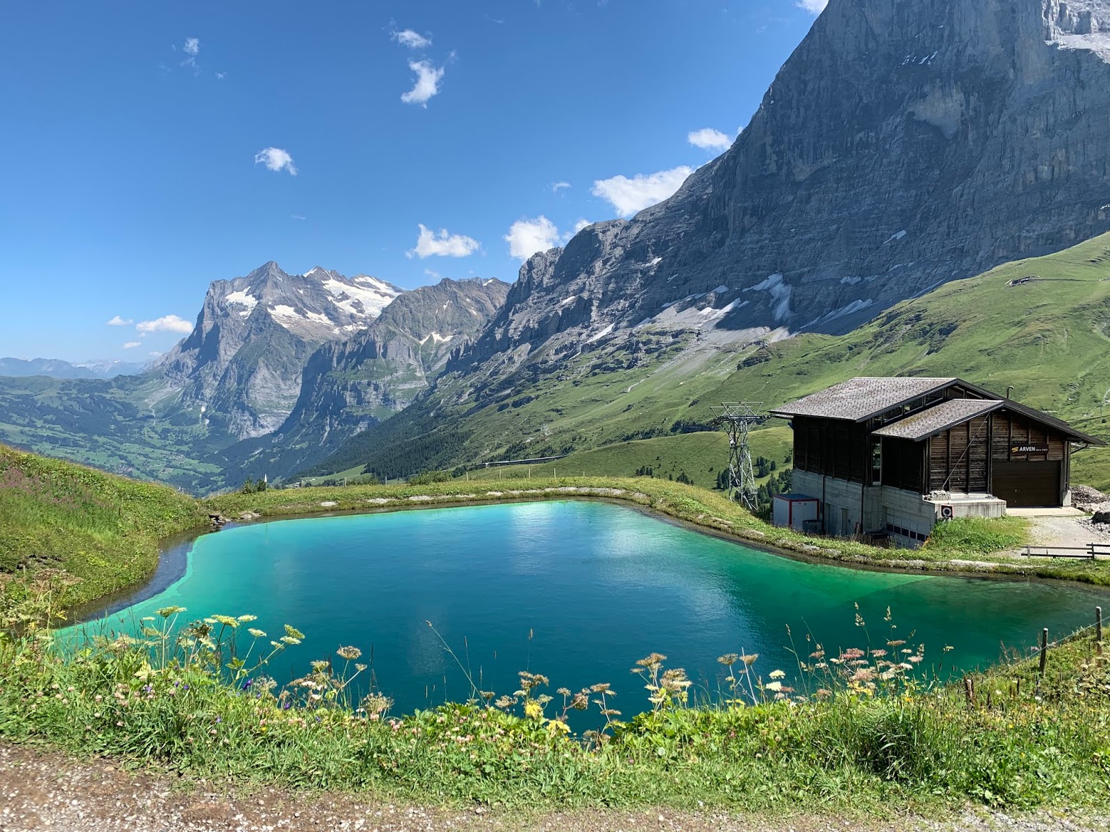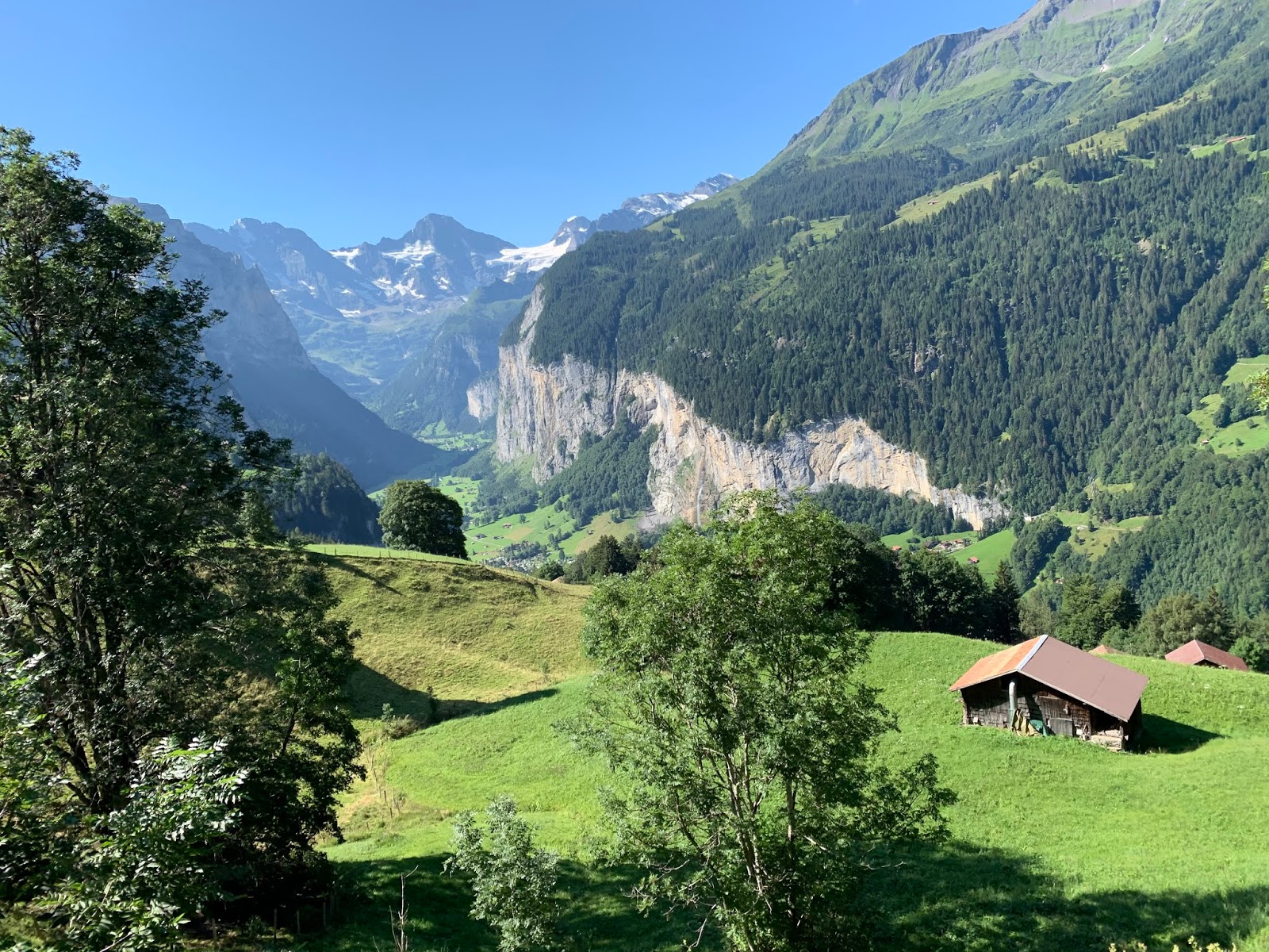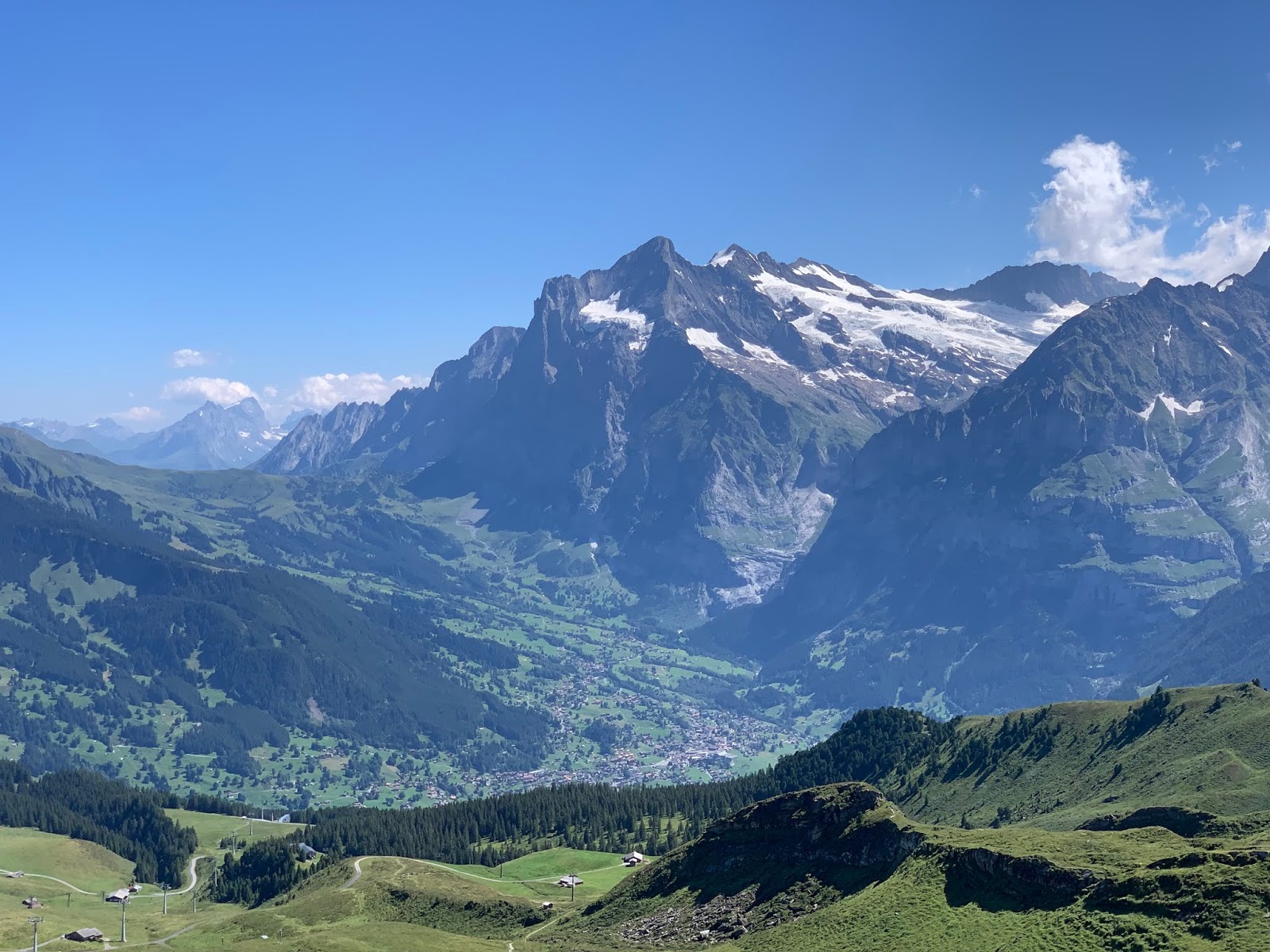 这是少女峰东侧山谷中的格林德瓦Grindelwald,文根Wengen和劳特布龙嫩Lauterbrunnen都在西侧。