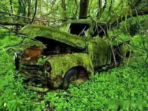 日本福岛灾难的放射后,人类遗弃的汽车被自然界慢慢吞噬。