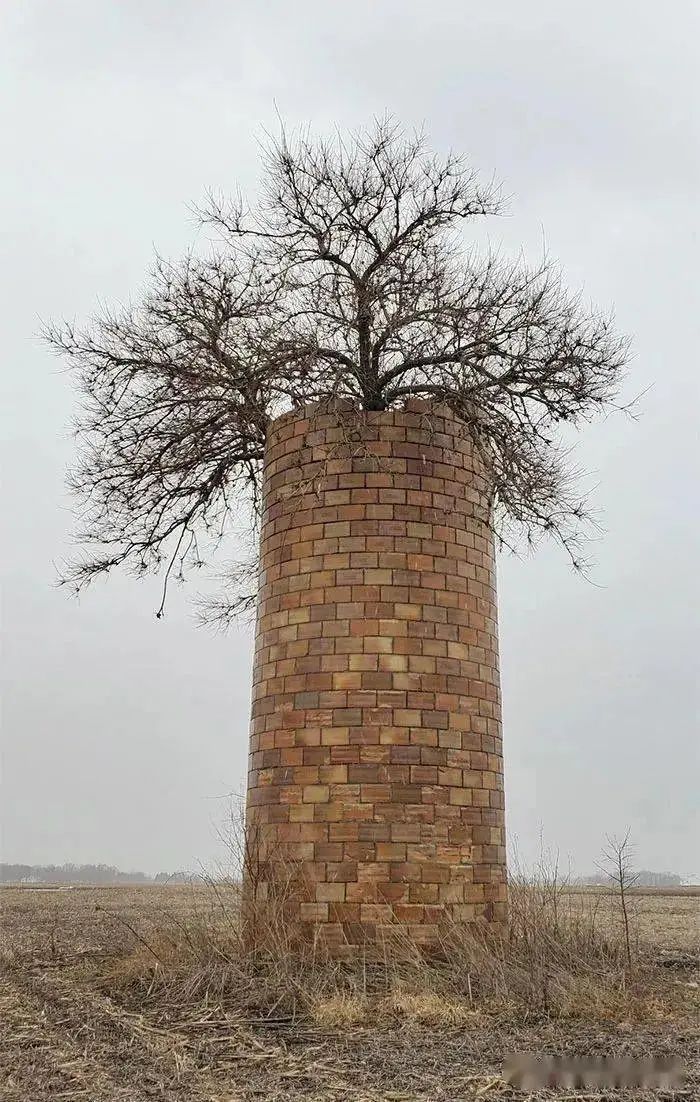 从一个废弃的烟囱里长出来的大树,大自然真是太神奇了。