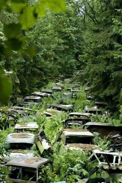 日本福岛灾难的放射后,人类遗弃的汽车被自然界慢慢吞噬。