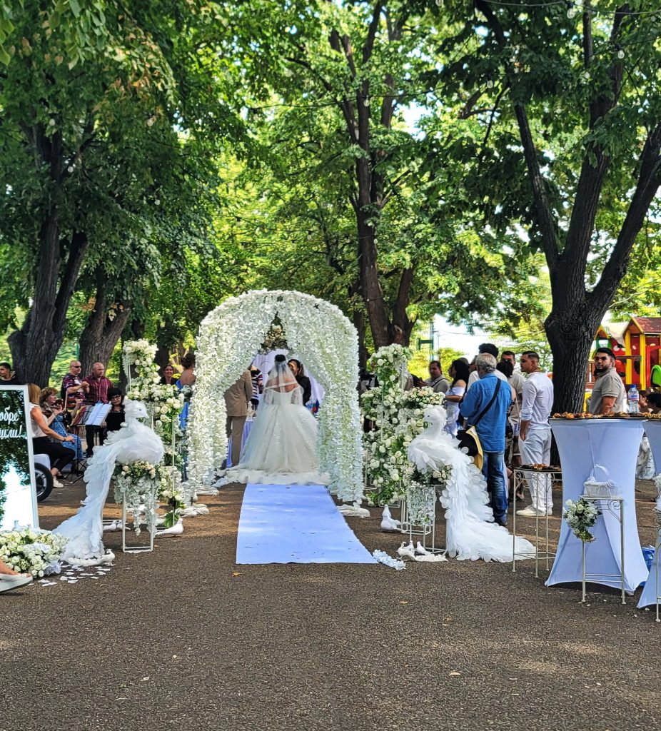 公园内保加利亚当地人在举办婚礼