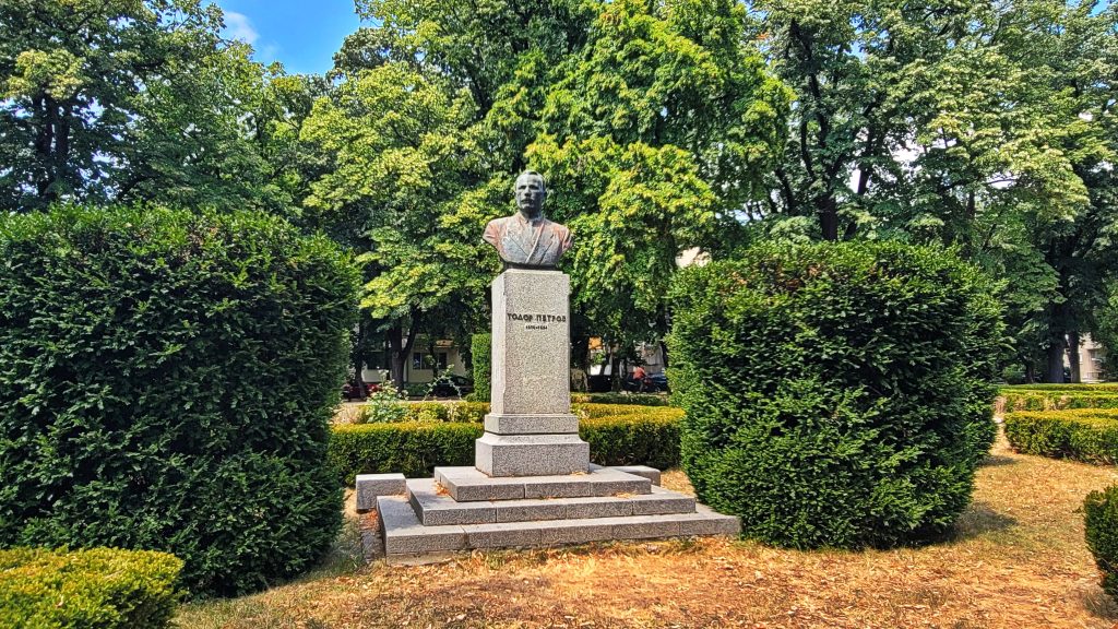 公园内托多尔·彼得罗夫半身像,他在保加利亚早期工人运动和左翼思想传播中发挥过重要作用,虽英年早逝,却成为当时革命理想与社会变革精神的象征。