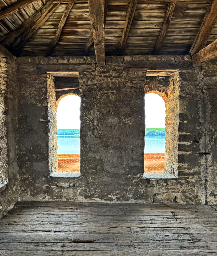 从塔楼内部观察口,可见多瑙河。