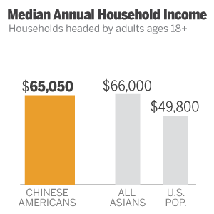 9)家庭收入的中点数,亚裔家庭比美国大众要高出32.5%。