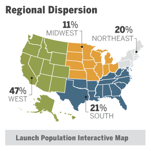 14)将近一半的中国人住在美国西部,东北和南部各有20%的华裔人口。