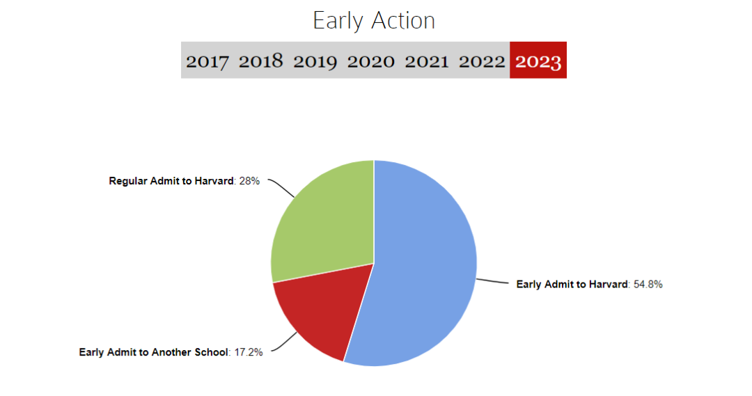 在今年的新生群体中,哈佛大学 54.8% 的学生是被 EA (提早申请) 录取进来的,而正常录取进校的学生只有28%。