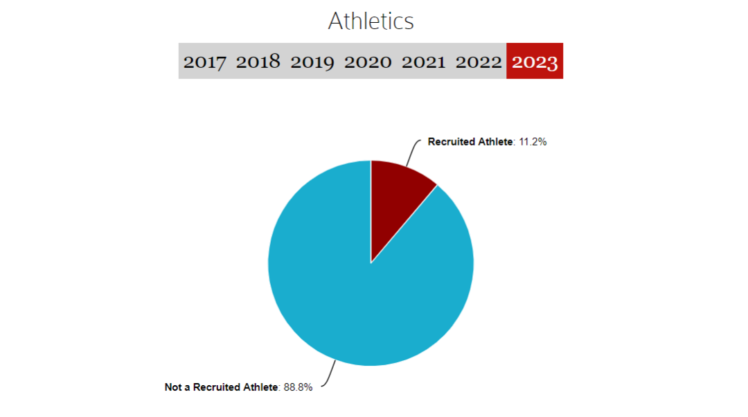 今年,招收运动员的比例较之去年减少了1%,占比为11.2%,并无什么太大差别,但值得注意的是76%的运动员都是白人。