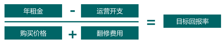 投资者需通过投资模型来筛选最优投资房产以及购买价格。该模型应当包括:房产本身的地理位置和大小等因素分析、租金预测、运营开支预估、翻修费用评估及目标回报率(基金层面)。以下为简化版模型: