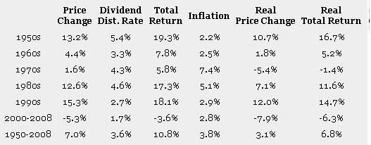 1950-2008 SP500 扣除通胀平均每年3.1%,含通胀6.8%