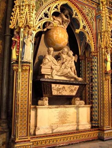 牛顿葬在著名的伦敦威斯敏斯特教堂墓地,墓碑铭文是这样写的∶