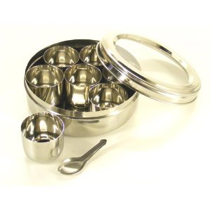 我初步的设想是装turmeric, cumin powder, corriandor powder, curry powder, black pepper, garam masala (self-made), cinnamon,但cinnamon, black pepper我都不常用。还有,我想全部装powder,no particular reason, 你的意见呢?这个Masala Dabba我肯定会常用所以想装营养价值高又美味的香料。