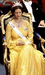 1976年,也就是西尔维亚参加诺贝尔奖颁奖典礼的第一年,她穿着由Dior制作的黄色塔夫绸裙子,感觉这个角度还有点像莱娅公主诶。