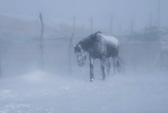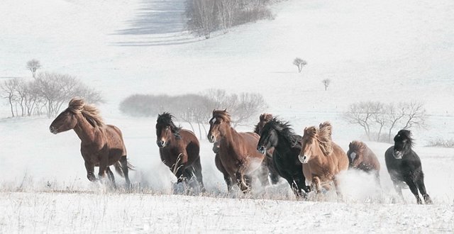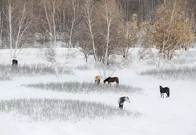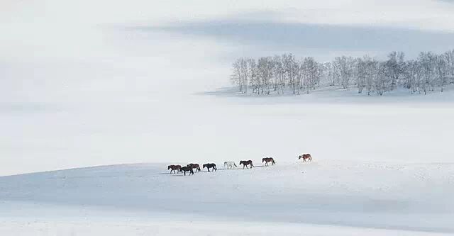 无我之境的雪原,造就了蒙古马坚韧的习性。