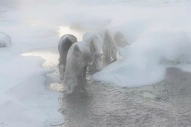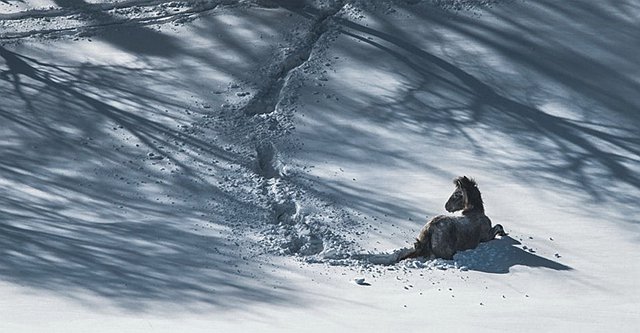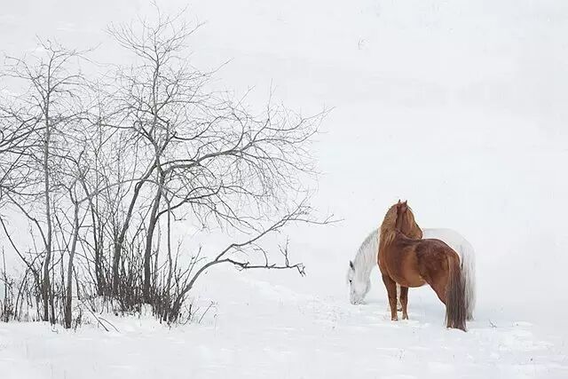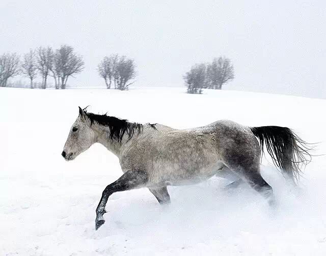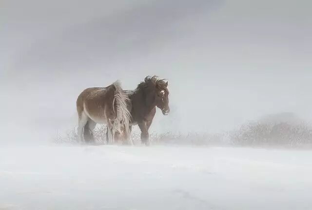 在雪中,马儿体验着自由的存在和生命对抗中的质感。