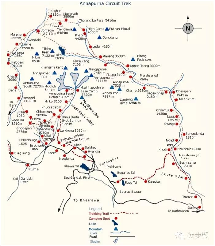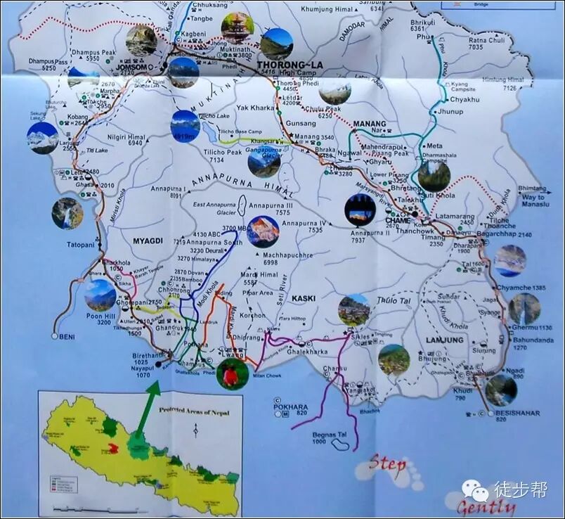 1、东线可以坐车到Chamje再开始徒步,西线从Muktinath开始有区间班车可坐;