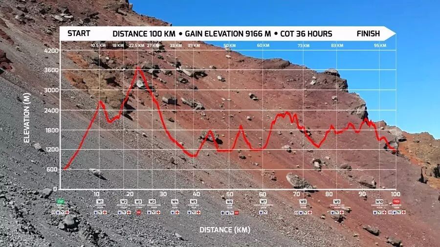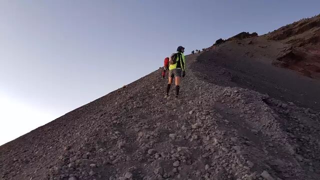 晚上7点开跑一直到日出前后登上山顶,10个小时内几乎是4000米的连续爬升,包括最难爬的火山灰路段,当你心满意足的从山顶返回补给点时,陡然发现才跑了22公里,前方还有38公里,一千多米的爬升呢。