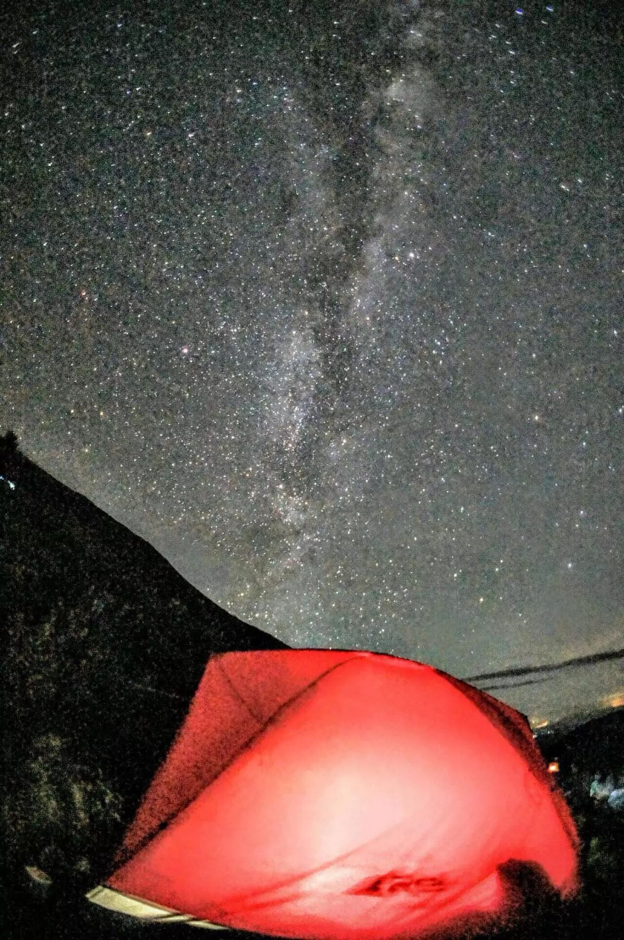 一个自己含了几个月的执念跟大家一起实现的温暖吧,觉得跟你们到哪里都会很开心 。尤其在林贾尼爬坡的时候可以找玩咖的红色帐篷和Vicki的粉色外套,好幸运。