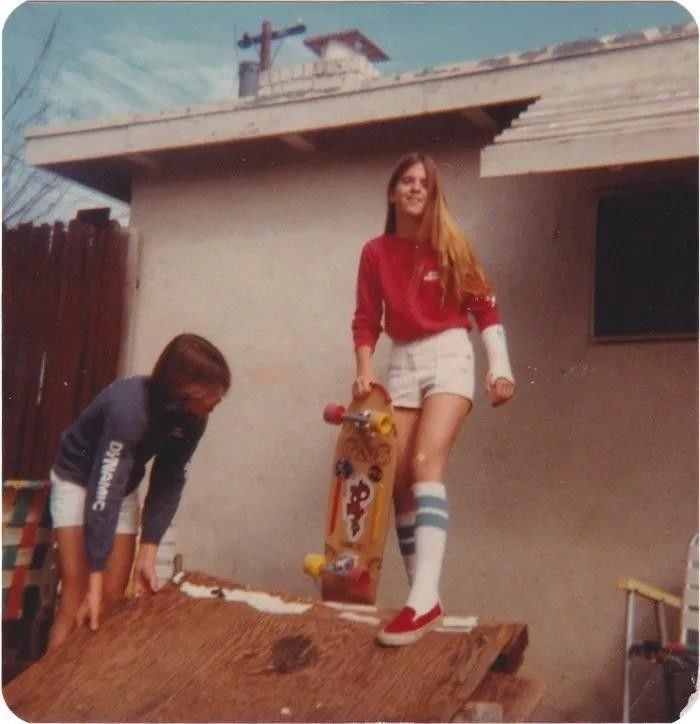 跟现在玩滑板的小姑娘,