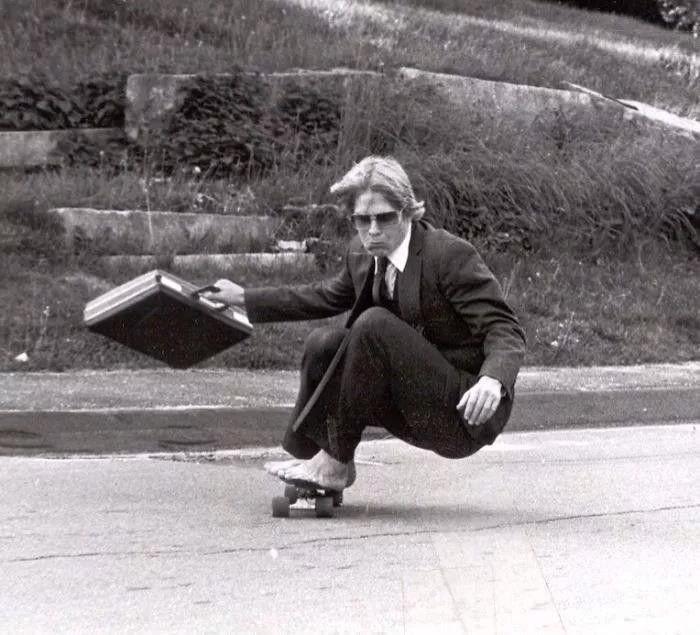 我爸戴着墨镜、赤脚滑板,
