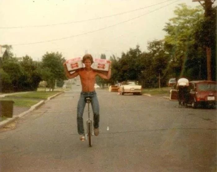 那个时候我爸骑着独轮车,