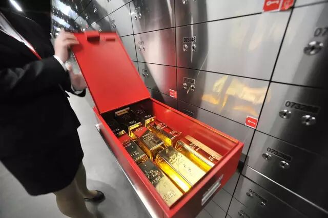 哇,金灿灿的!这里最小的保管箱尺寸:长28.6cm,高12.7cm,深60cm,这个内胆除了可以放金条,还能容纳100万现金!